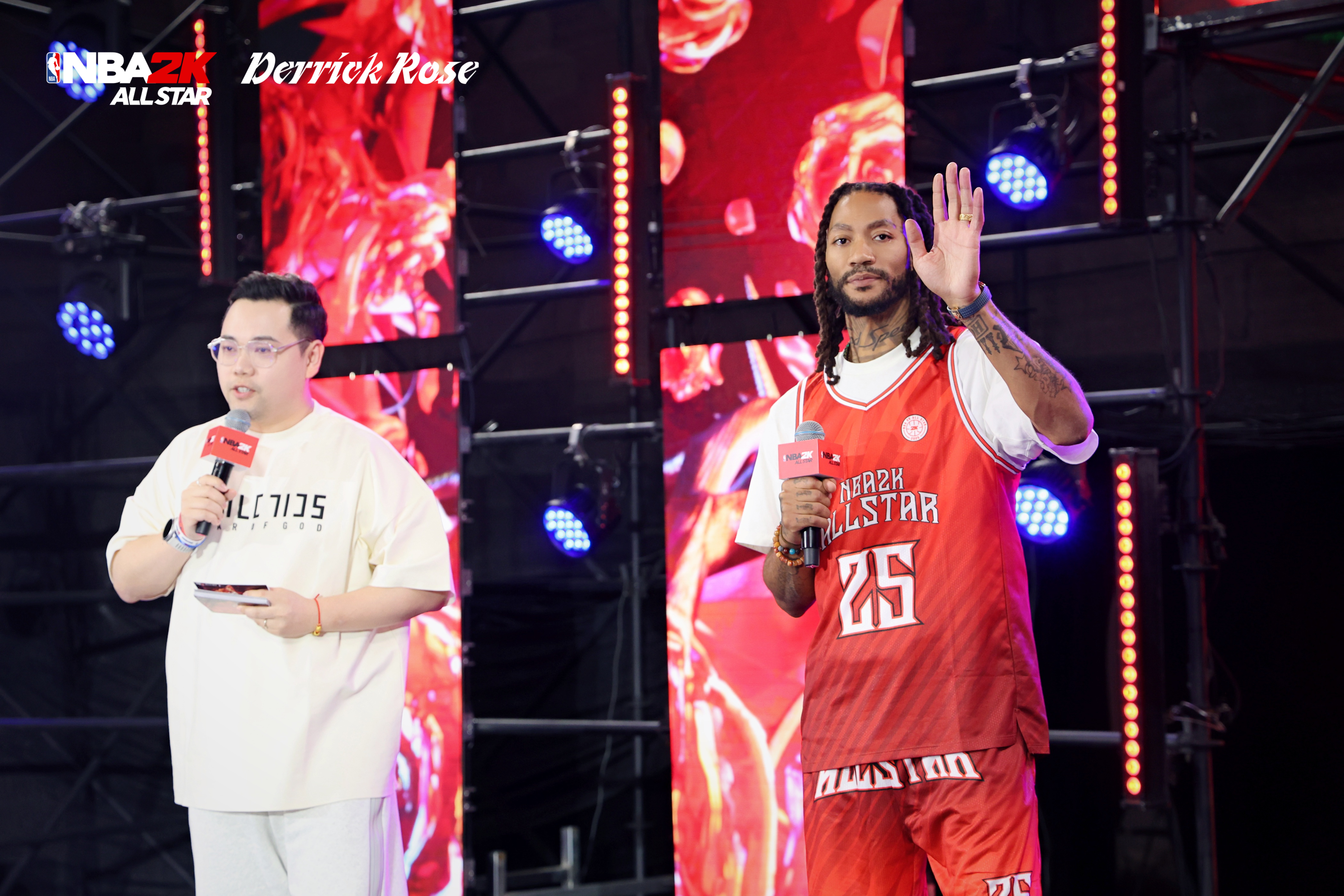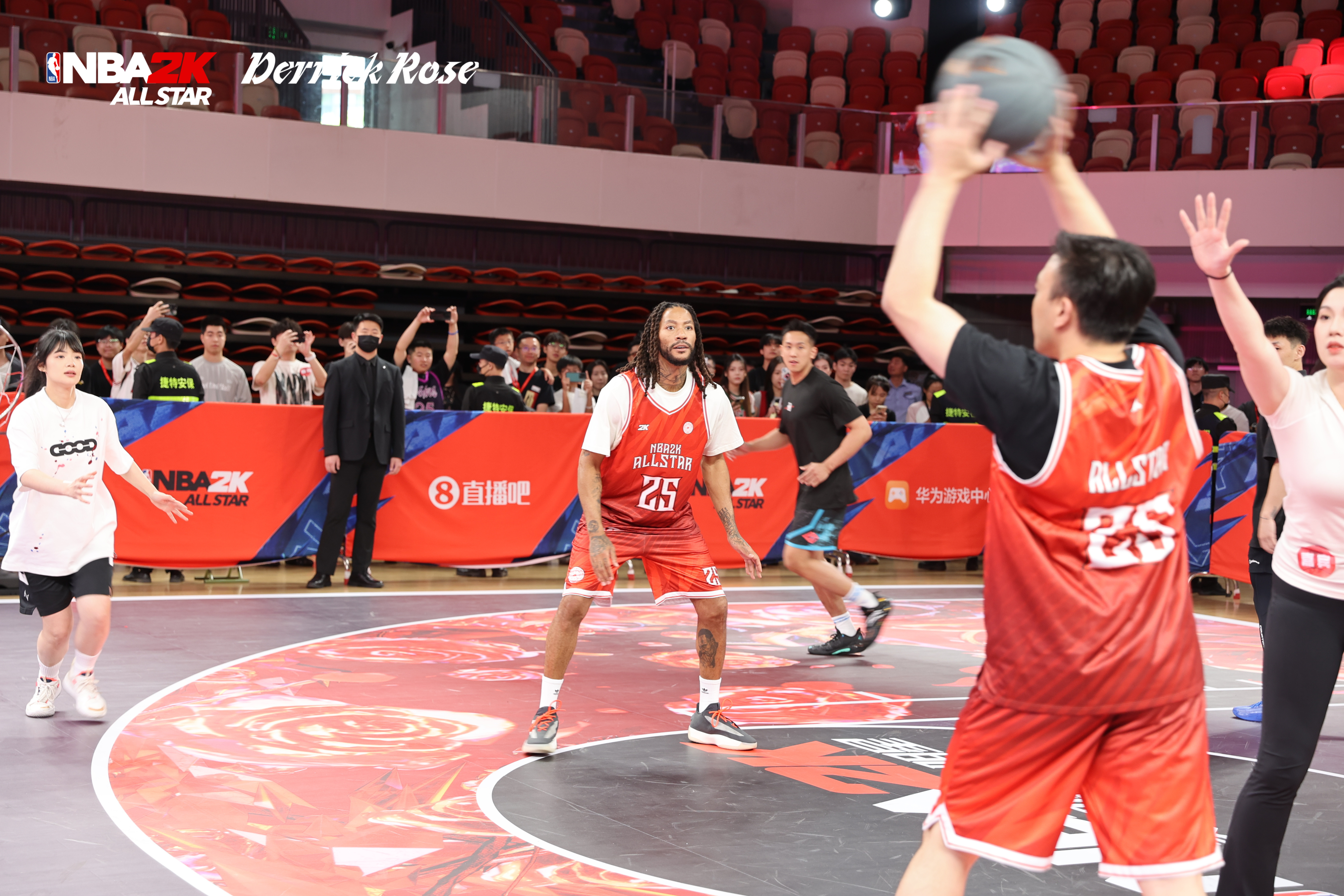 下午2点10分,活动准时开始,在全场几百名粉丝、游戏玩家“MVP”的欢呼声中,前NBA球星、“风城玫瑰”德里克-罗斯闪亮登场。